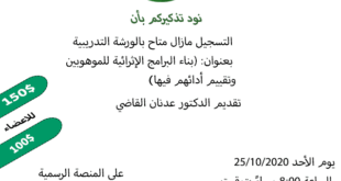 أكمل القراءة »_ورشة تدريبية _بناء البرامج الإثرائية للموهوبين وتقييم أدائهم فيها