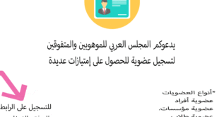 يدعوكم المجلس العربي للموهوبين والمتفوقين تقديم طلب انتساب لعضويته لعامين متتابعين للحصول على خصم لجميع فعاليات المجلس من (مؤتمرات وورش تدريبية وكتب) بحيث يتاح للأعضاء المنتسبين للعضوية بعد منحهم الحساب الإلكتروني على موقع المجلس العربي والرقم السري ما يلي: 1.المشاركة في انتخابات الهيئة الإدارية الدورية التي يعقدها المجلس كل عامين …