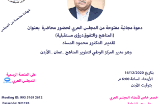 دعوة مفتوحة مجانية من المجلس العربي للموهوبين والمتفوقين لحضور محاضرة بعنوان: المناهج والتفوق:رؤى مستقبلية ( تقديم الدكتور محمود المساد) والمحاضر يحمل درجة الدكتوراه في المناهج ، وباحث ، وخبير تربوي ، ومدير المركز الوطني لتطوير المناهج. عمان ، الأردن بتاريخ 16/12/2020 الساعة 8:00 ليلًا بتوقيت الأردن ZOOM على المنصة الرسمية …