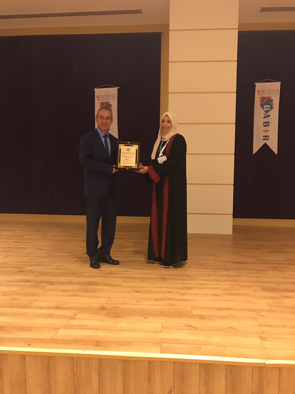 وقام الأمين العام للمؤتمر الاستاذ الدكتور أحمد بينار بتسليم درع المؤتمر للاستاذة هيام ممثلة المجلس.