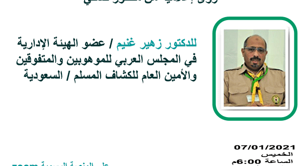 للدكتور زهير غنيم/ عضو الهيئة الإدارية في المجلس العربي للموهوبين والمتفوقين والأمين العام للكشاف المسلم /السعودية